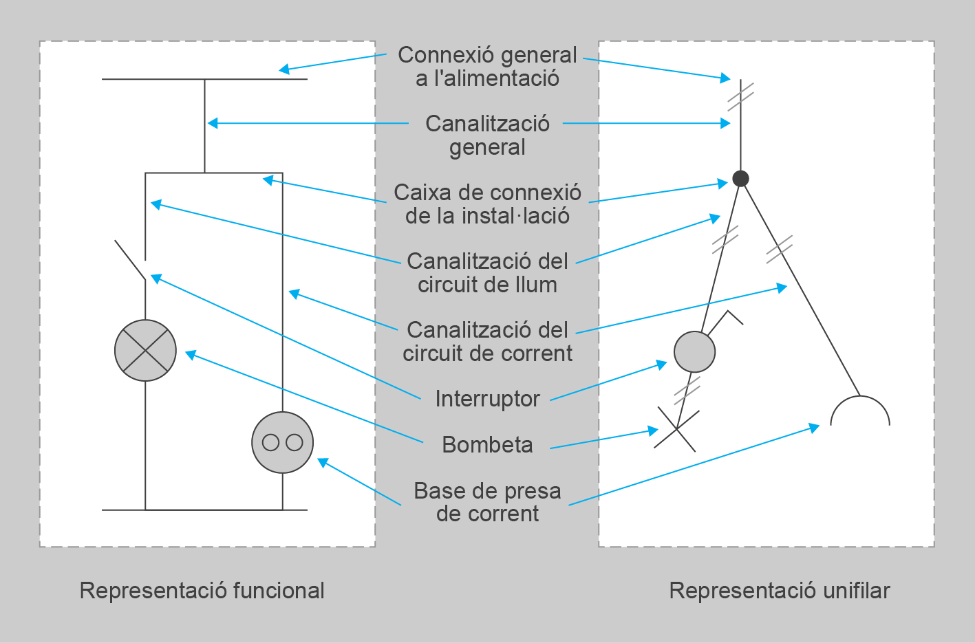 - Identificació dels circuits, de les connexions, dels dispositius de protecció, etc.