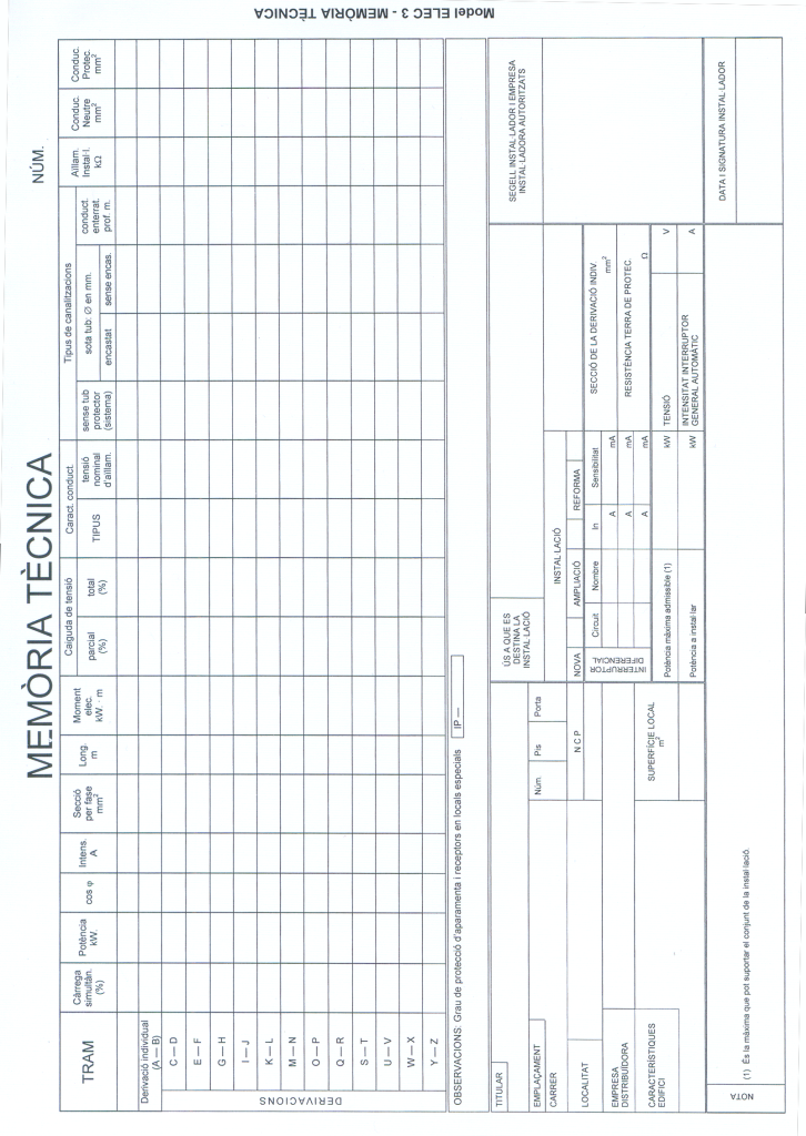 - Memòria tècnica: memòria tècnica. Model ELEC-3