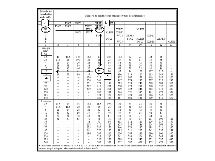 - Conductor protecció (mm2). El càlcul de la secció del conductor de protecció es basa en la secció dels conductors de fase a partir de les condicions exposades en la taula.