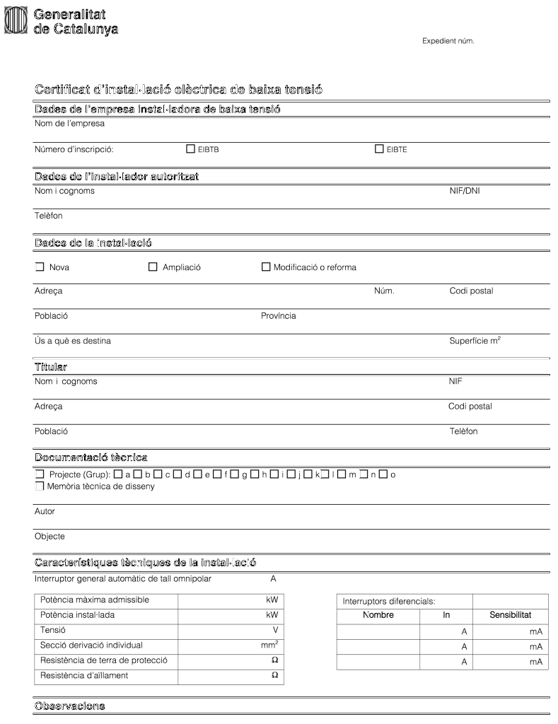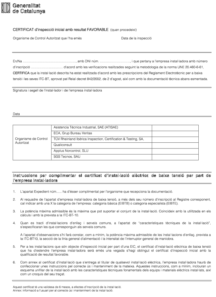 - Certificat d’instal·lació elèctrica de baixa tensió