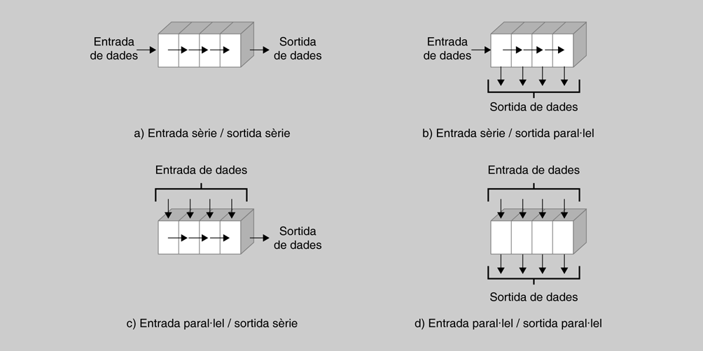 - registres de desplaçament entrada sèrie/sortida sèrie