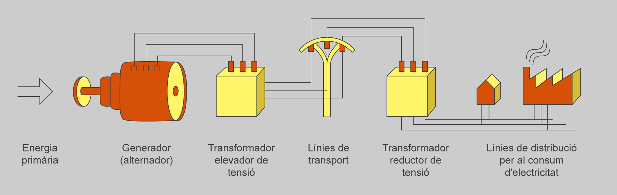 Si fem un petit resum de tot el sistema de generació, transformació, transport i consum de l’energia elèctrica (vegeu la figura) es pot dir el següent:
