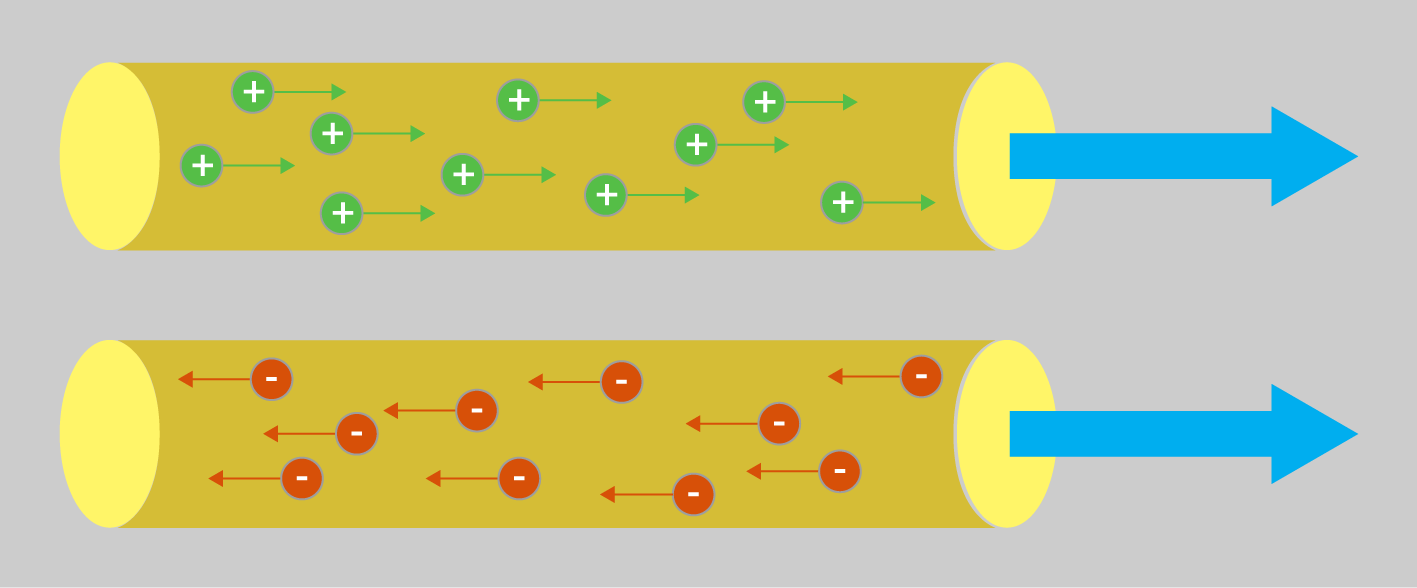 Si es posen en contacte dos punts, l’un carregat positivament i l’altre carregat negativament, mitjançant un conductor, passarà el següent: els electrons que calguin viatjaran pel conductor d’un punt a l’altre fins que el conjunt sencer quedi elèctricament equilibrat i en repòs.