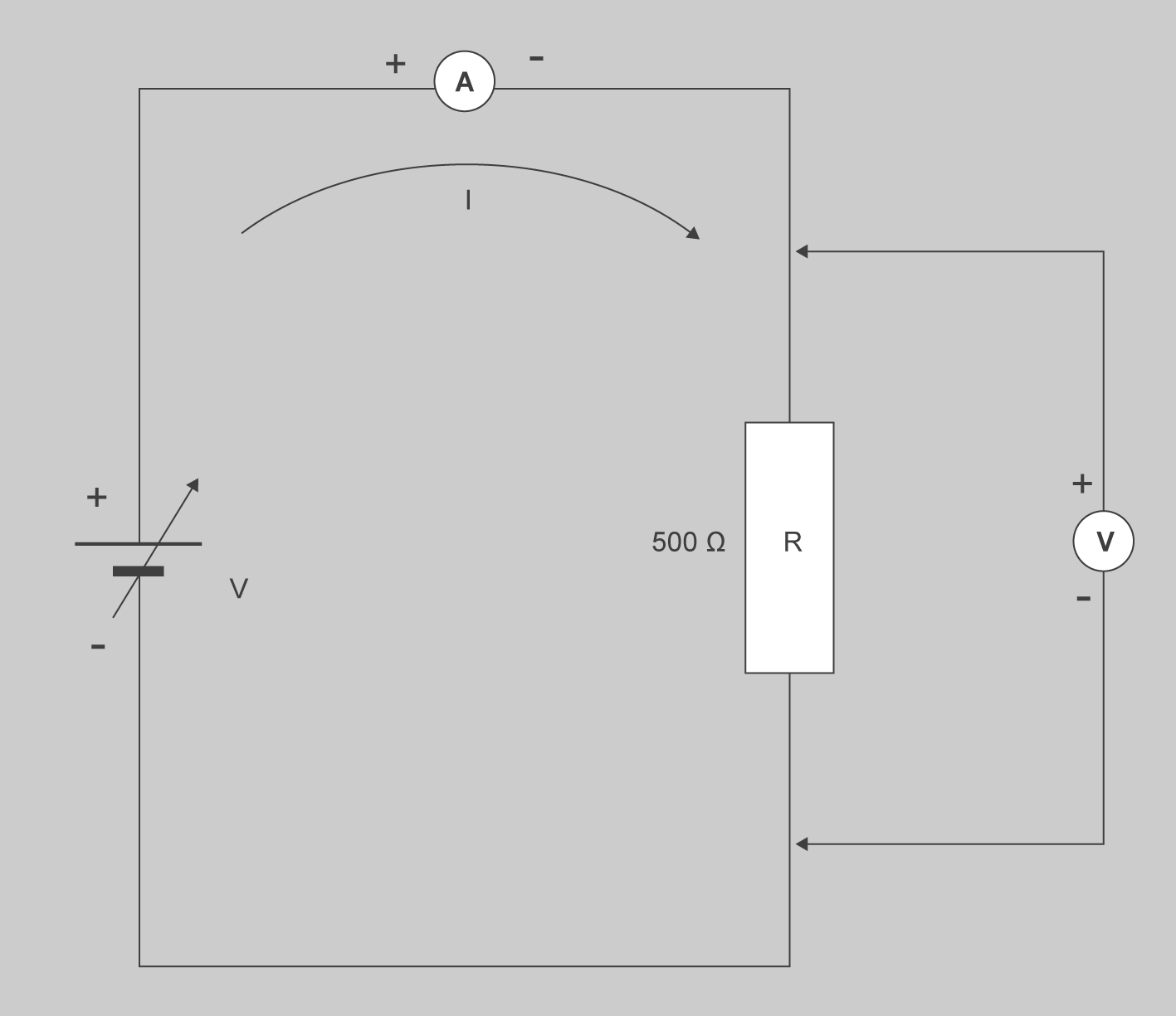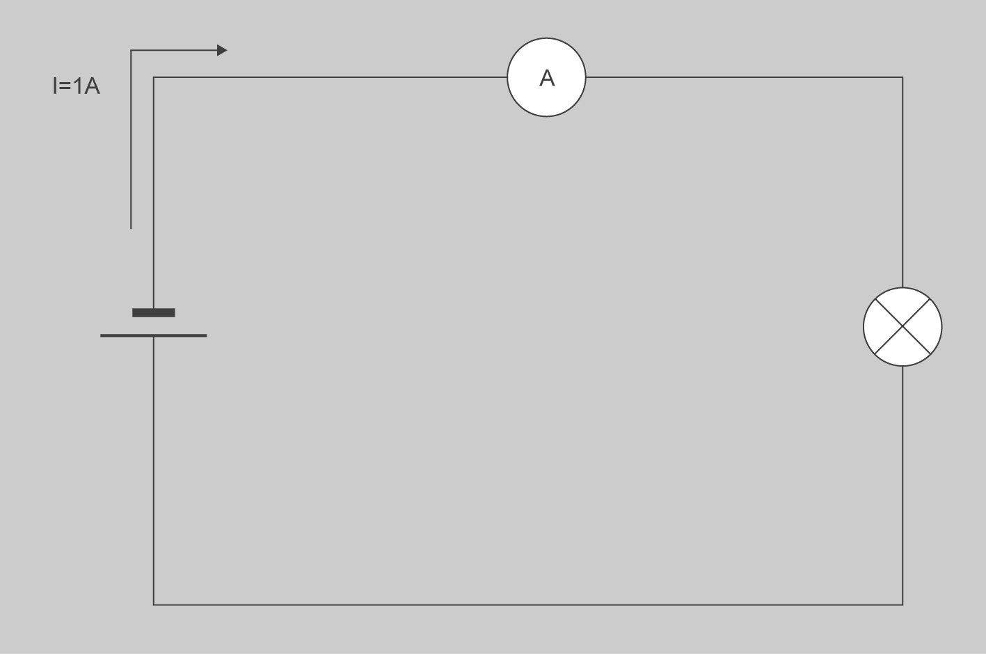 Per mesurar la intensitat del corrent es fa servir un aparell anomenat amperímetre, els terminals del qual s’han de connectar “intercalats” en el punt en què es vol mesurar la intensitat (el corrent ha de passar físicament per l’amperímetre), tal com es mostra en la figura, en què l’amperímetre s’indica amb el símbol que hi correspon: A.