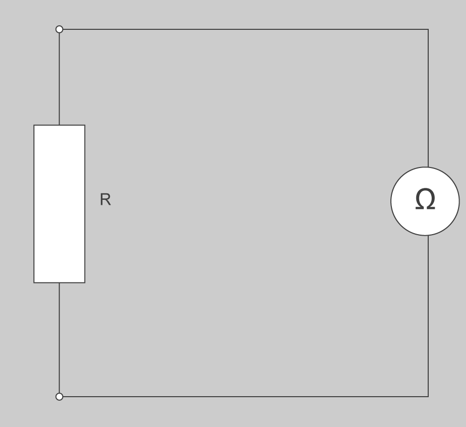 Per mesurar la resistència cal utilitzar un aparell anomenat òhmmetre. Cal connectar el component a mesurar a l’aparell, tal com s’indica en la figura. L’òhmmetre porta la seva pròpia font d’alimentació (normalment una pila) i el component a mesurar no pot tenir tensió (ha d’estar desconnectat del circuit).