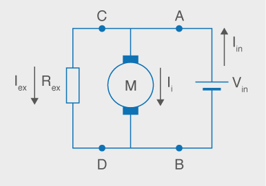 Els motors d’excitació independent requereixen d’una font de tensió externa per generar el camp magnètic. L’esquema és com el de la figura.
