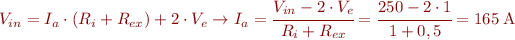 - Sabem que en el motor, en el moment de l’arrencada, no està girant, i per tant, no genera cap fem. Per tant, podem plantejar l’equació, suposant que no està connectat el reòstat: