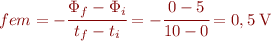 Uilitzant l’expressió de la fem que hem vist anteriorment, podem calcular-la mitjançant la diferència entre els valors del flux final i inicial, i el temps que ha trigat en fer aquest canvi:
