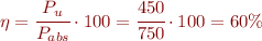 El rendiment d’una màquina és la relació entre la potència absorbida (Pabs) i la potència útil que proporciona (Pu). S’acostuma a expressar en percentatge.