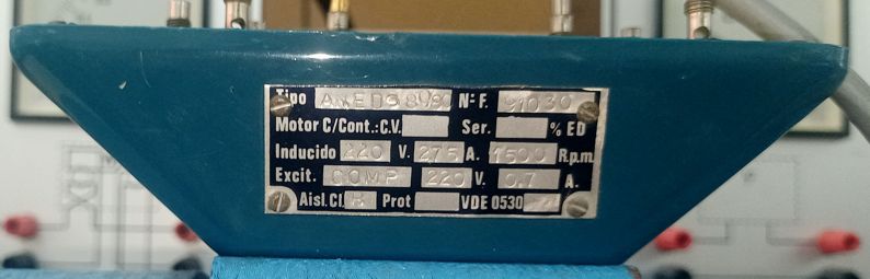 A la figura podeu observar una placa de característiques d’una màquina de cc que sí la presenta.
