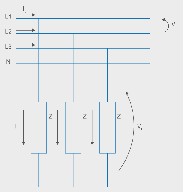 Aquest corrent està relacionat amb el corrent de línia per l’expressió:
