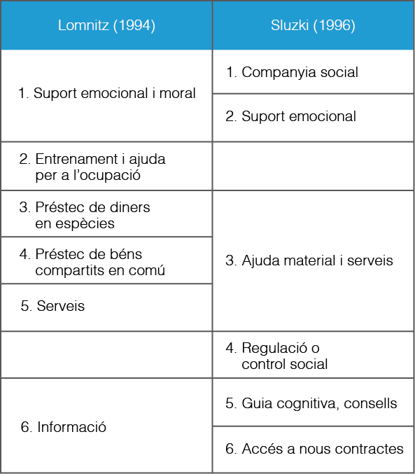 - Sistemes naturals. Representen els sistemes que ofereixen identitat, protecció i suport a les persones i que es troben estretament vinculats al seu entorn vital i subjectiu més immediat. La família, fonamentalment, i les relacions estretes d’afiliació entre grups d’iguals o les relacions de veïnatge en són exemples.