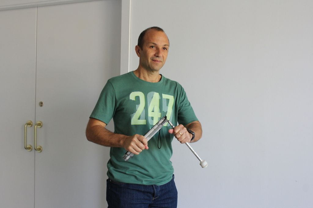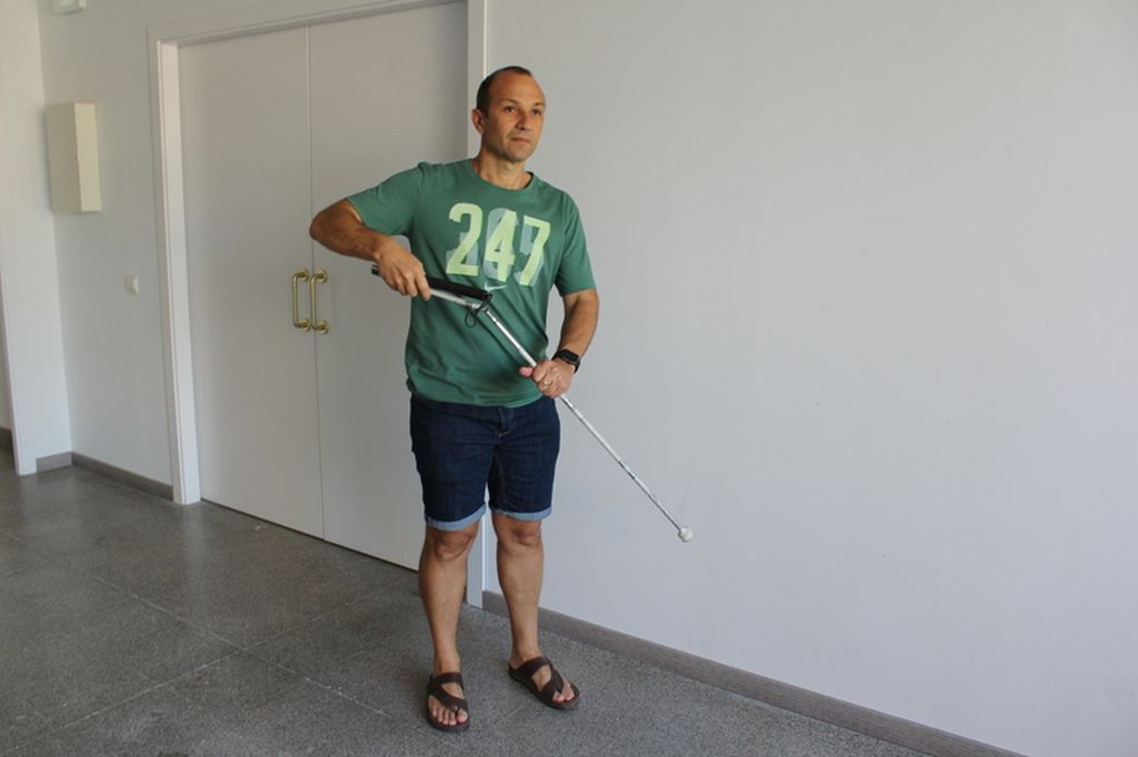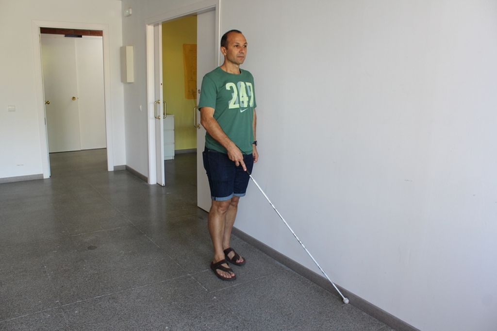 - Plegar i desplegar el bastó blanc: serà el primer que ensenyarem a l’usuari.