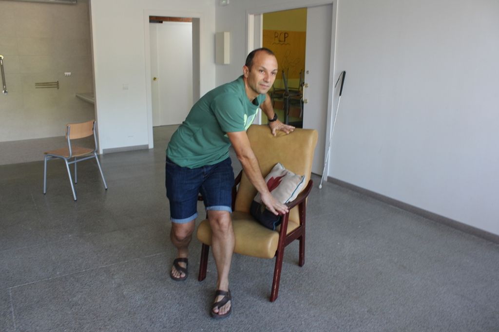 - Li indicarem que envolti la cadira mantenint en tot moment el contacte continu amb l’objecte de tal manera que pugui analitzar-la i seure de manera autònoma.