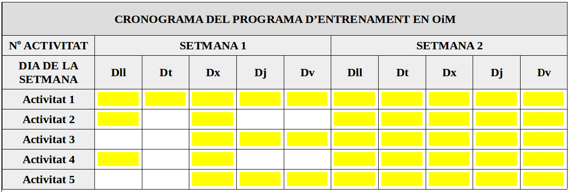 Per portar a terme el programa d’entrenament en les habilitats d’OiM, es van establir els objectius generals, específics i operatius per portar a terme al llarg del programa i definir els tipus d’activitats més prioritàries a treballar.