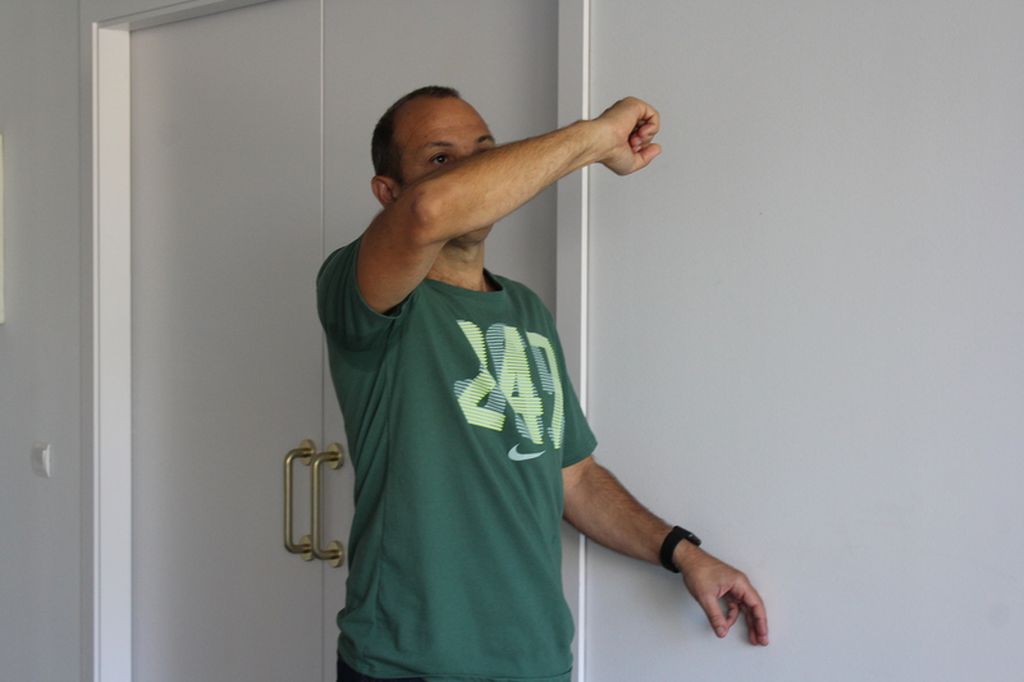 - Quan acabi, passarà la mà que estava lliure per darrere del cos fins a arribar al colze oposat i, finalment, deixarà lliure la mà que inicialment estava agafada al colze.
