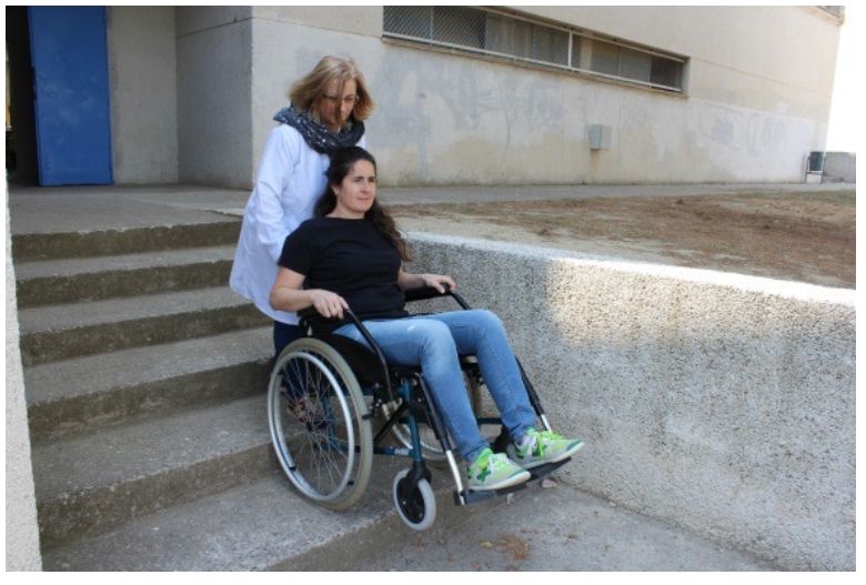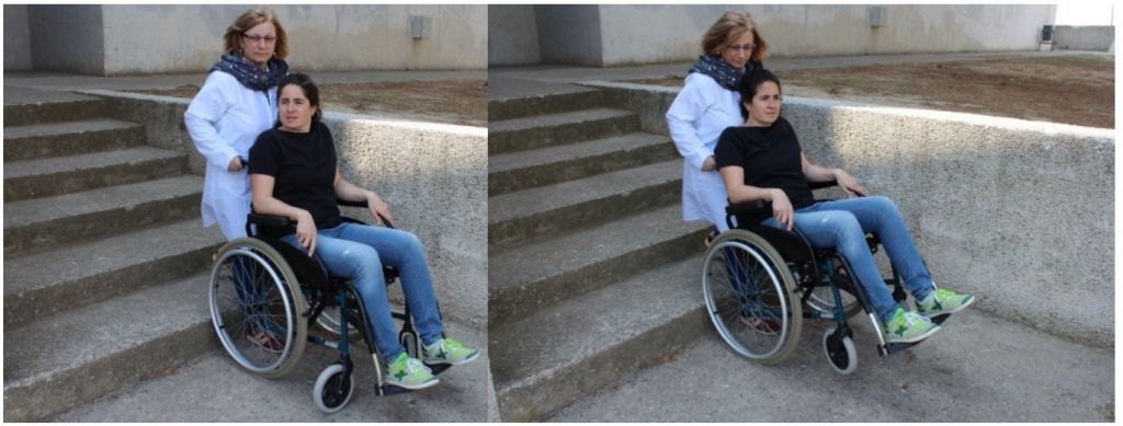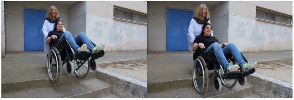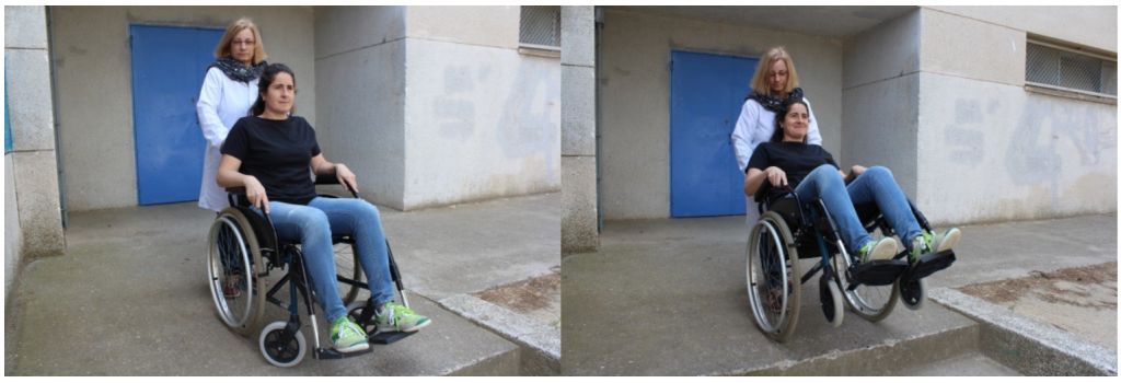 Tècnica per afavorir la pujada d’esglaons amb cadira de rodes