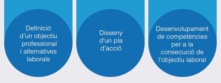 El desenvolupament competencial implica entrenar, adquirir i afermar competències associades als tres elements clau dels projectes professionals (vegeu la figura) i que s’han de contemplar als itineraris personals d’inserció.