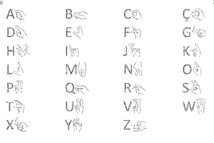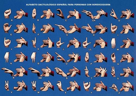 Observeu a la figura (ONCE), l’alfabet dactilològic de la llengua de signes espanyola (o LSE) produït a l’aire i en el palmell (alfabet tàctil).