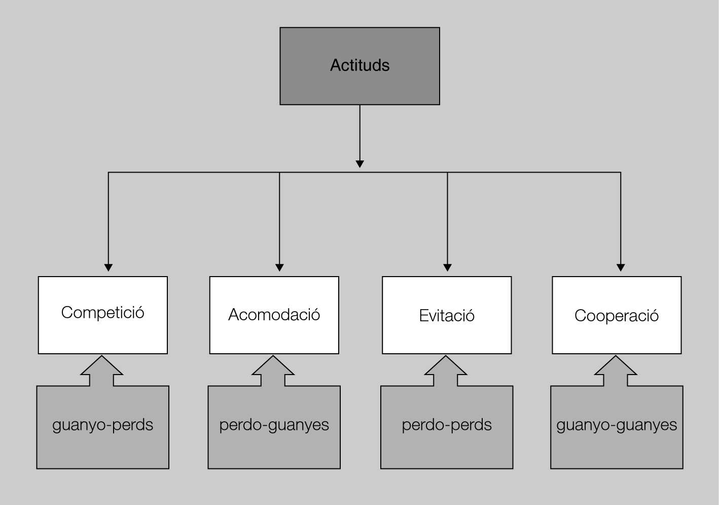 - Es relaciona amb la forma que habitualment se solen enfrontar o “resoldre” els conflictes: la violència, la destrucció o anul·lació d’una de les parts, i no una solució justa i mútuament satisfactòria.