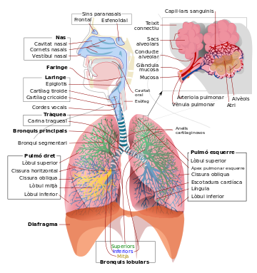 L’aparell respiratori està compost per diversos òrgans; la seva anatomia està composta per (vegeu la figura):