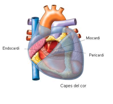 Alhora, el cor està format per tres capes de teixits; són les següents, de dins cap enfora (vegeu la figura):