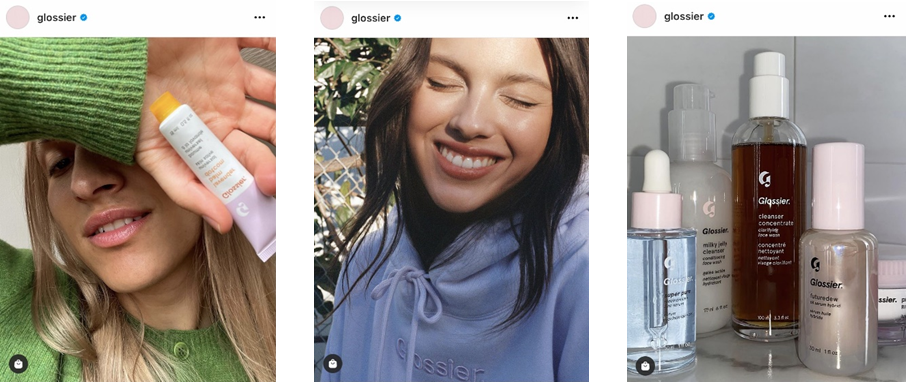 Des dels seus inicis, Glossier va fer de les xarxes socials, i concretament d’Intagram, una prioritat. Va aconseguir atraure 13.000 seguidors a través d’aquest canal abans de llançar el seu primer producte. Actualment, ja compta amb 2,6 milions de seguidors.