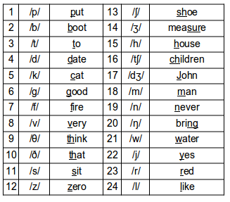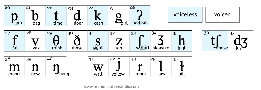 Look at the IPA symbols in the chart and listen how the English consonants are pronounced: