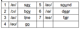 2. Look at the IPA symbols of the English diphthongs and pronounce the words in the chart: