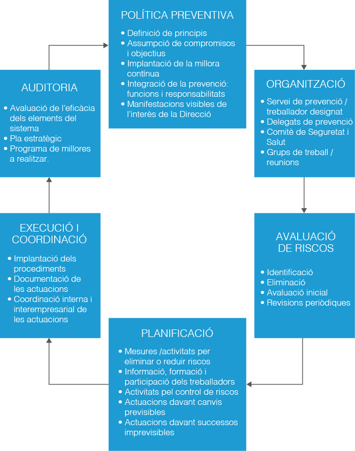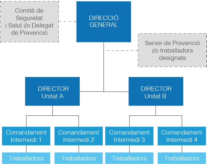 Per tal que l’acció preventiva dins una empresa sigui una cosa viva i real, i no només un simple tràmit documental, cal que la prevenció estigui integrada en el conjunt d’actuacions de l’empresa i en tots els nivells organitzatius (art. 16, LPRL).