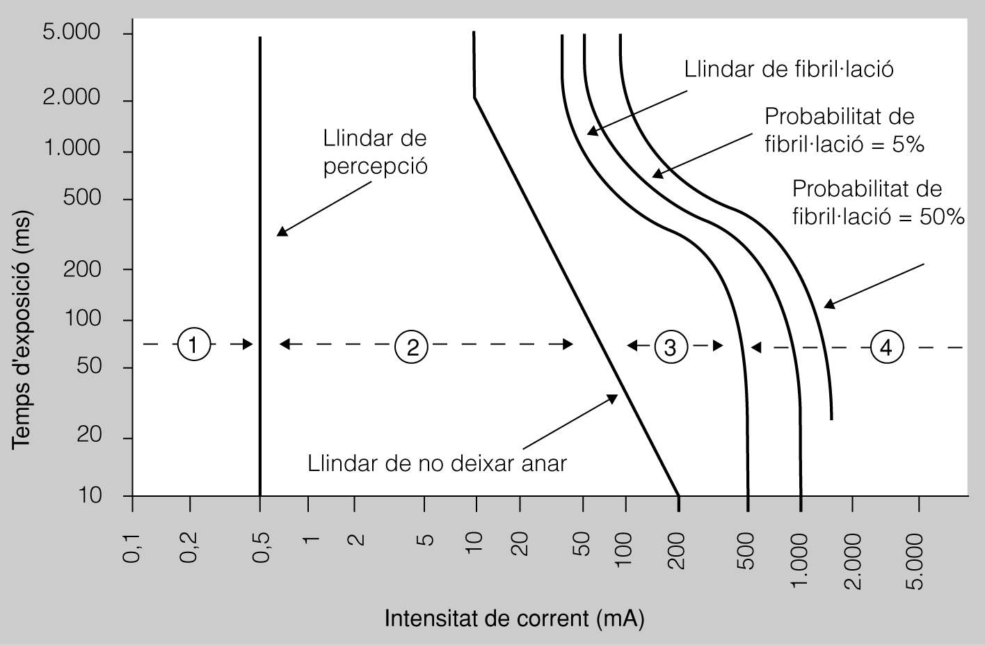 - Zona 1. Es percep el corrent, però no hi ha repercussió del ritme cardíac ni del sistema nerviós. Podem dir que estem dintre de la zona de seguretat.
