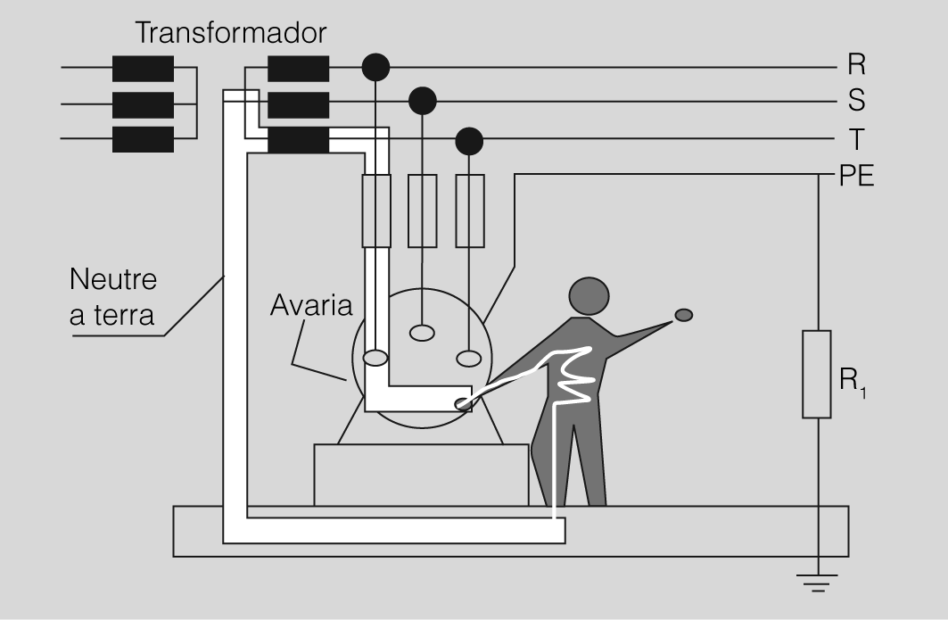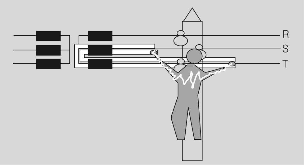 - R3 o resistència del punt de sortida: inclou la resistència del calçat i del terra. Pel que fa a aquest segon element, es considera que no és conductor quan la resistència que presenta un individu a la sortida de corrent per ambdós peus és superior a 50.000 ohms.