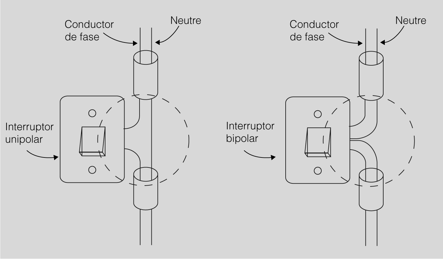 Partint de la base que la distribució interior d’un local o habitatge és monofàsica, segons la missió que es destini als interruptors aquests podran ser unipolars o bipolars (figura).