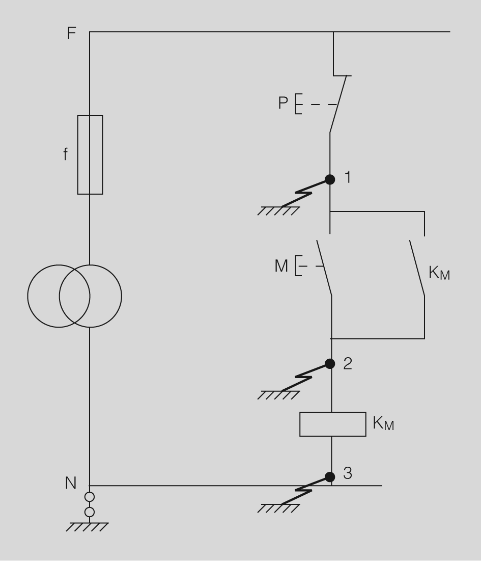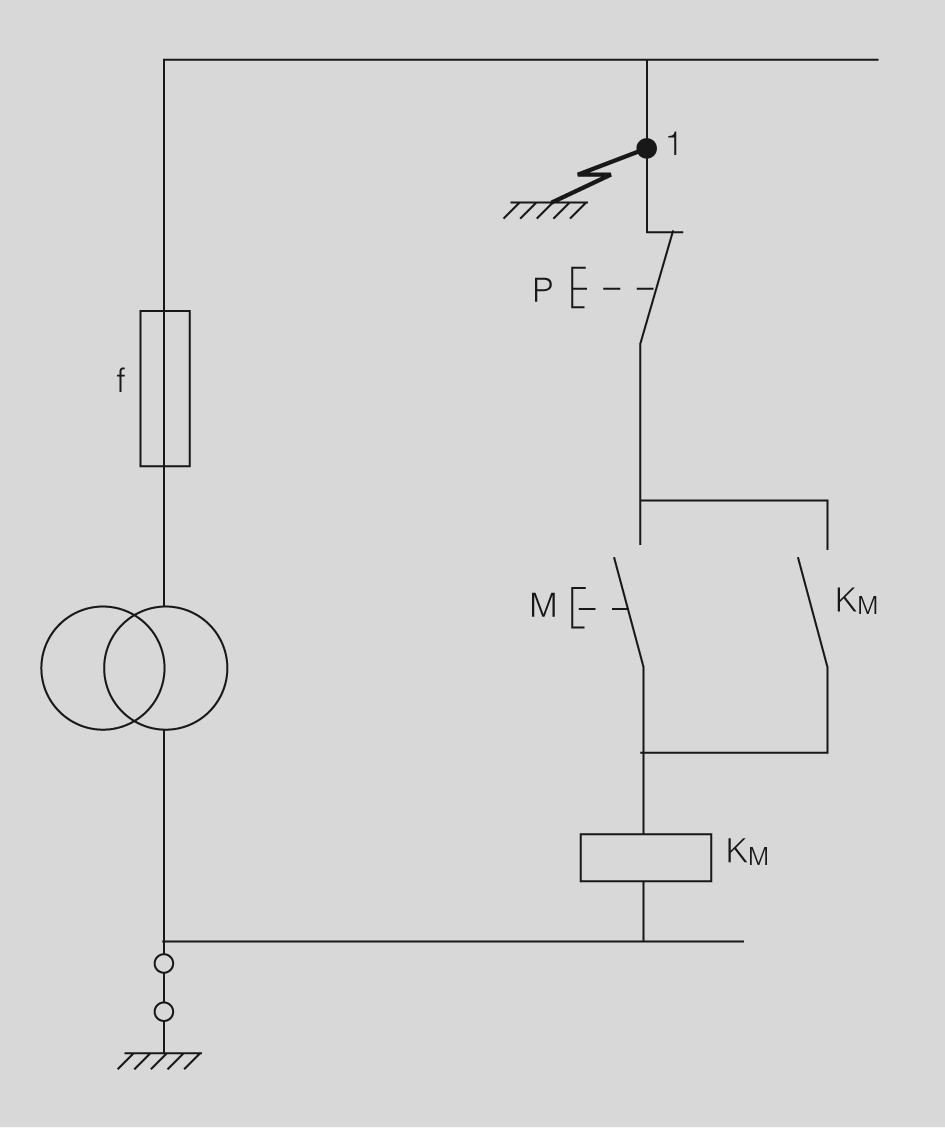 - Esquema de bona concepció (figura). Circuit connectat a terra: el primer defecte en el punt 1 provoca la fusió del fusible i la maniobra no pot realitzar-se.