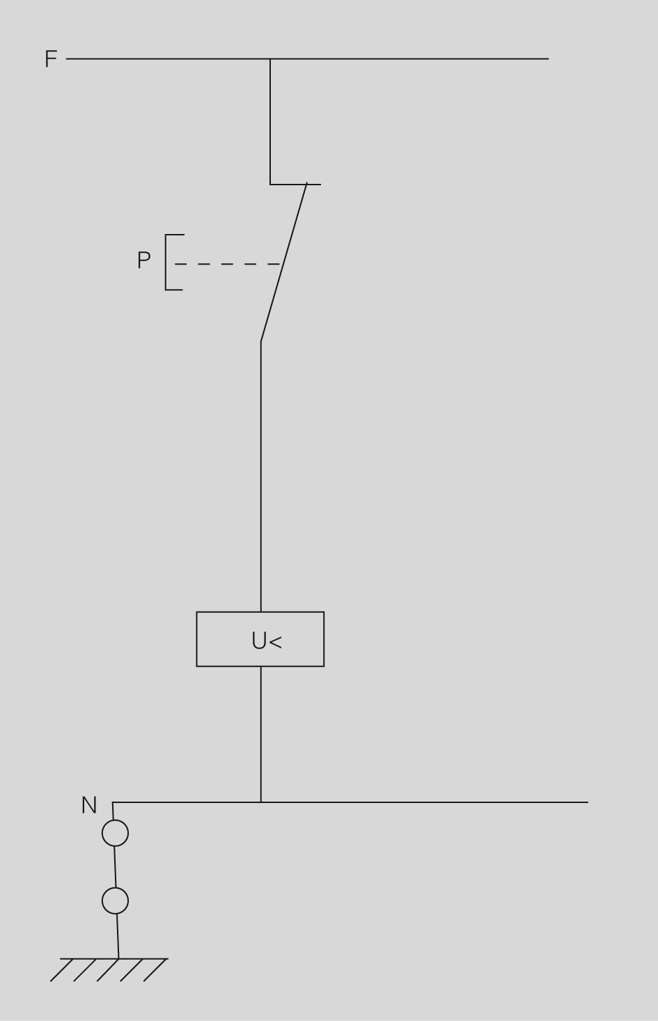 - Arrencada mitjançant interruptor automàtic proveït de relé de mínima tensió U (figura): el restabliment de la tensió després d’un tall no provoca l’arrencada inesperada; cal accionar l’interruptor automàtic.