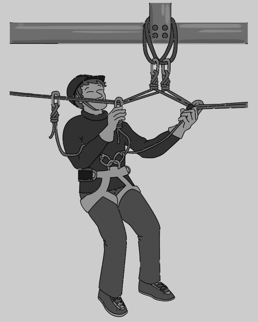 Aquesta línia d’ancoratge rígida pot ser un rail o un cable metàl·lic i es fixa en una estructura de manera que quedin limitats els moviments laterals de la línia.