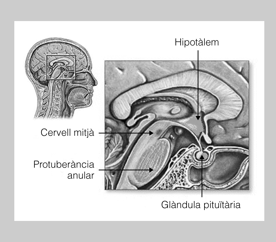 El conjunt dels mecanismes de termoregulació està governat per l’hipotàlem, una àrea del sistema nerviós central situada a la base del cervell (figura).