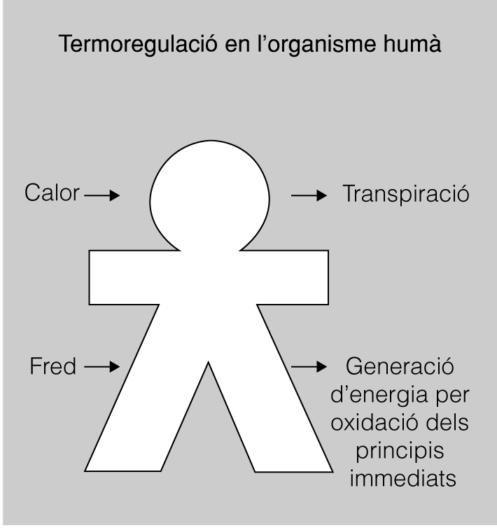 L’ésser humà és un organisme homeoterm, això implica que les reaccions metabòliques requereixen una temperatura constant de 37 ºC per poder-se dur a terme.