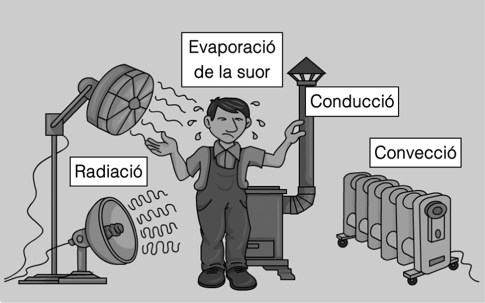 Quan el balanç tèrmic (figura) entre el treballador i el seu entorn és zero, es diu que es troba en equilibri.
