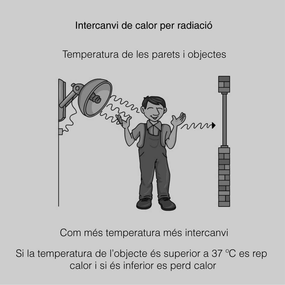 L’intercanvi de calor per radiació no està influenciat per la velocitat ni la temperatura de l’aire, ni per cap altra magnitud ambiental, excepte la temperatura radiant mitjana.