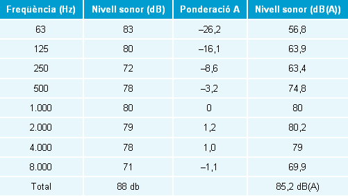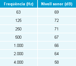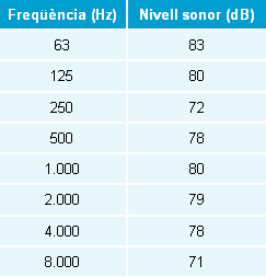 En un taller de mecanització es vol instal·lar una nova màquina. El fabricant informa que el nivell de soroll en bandes d’octava de la màquina en el lloc de l’operador és el de la taula següent: