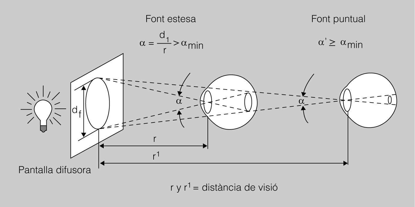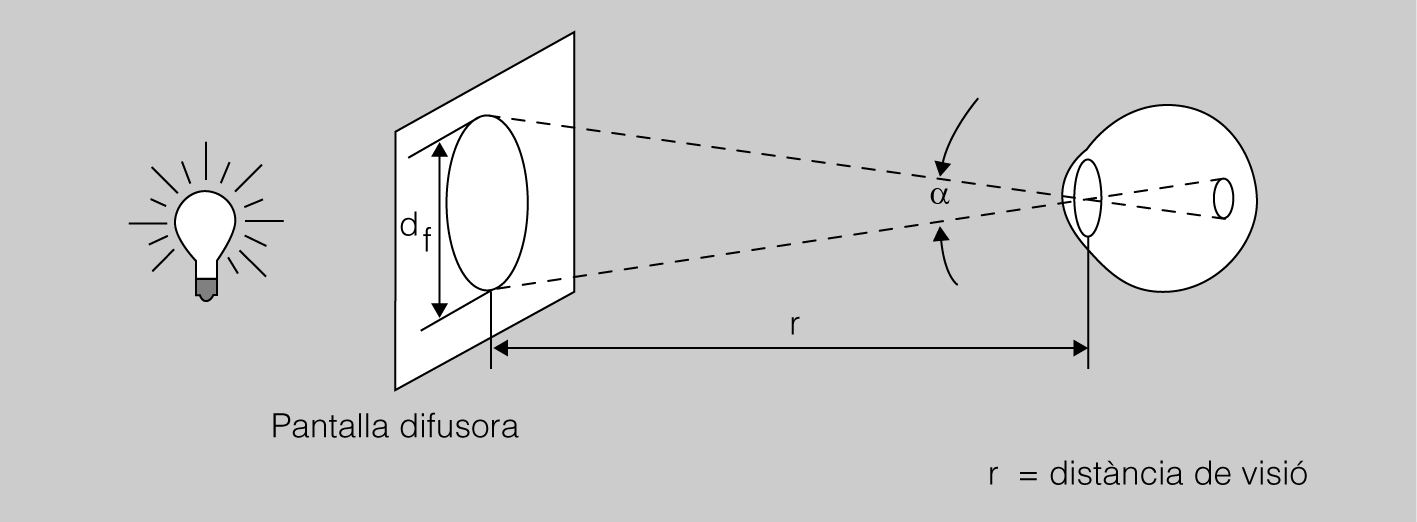 - Característiques del lloc de treball: la distància del treballador a la font, el temps d’exposició, l’angle de visió, el material processat, la possibilitat de reflexos, etc.