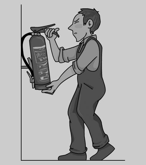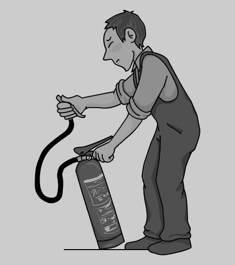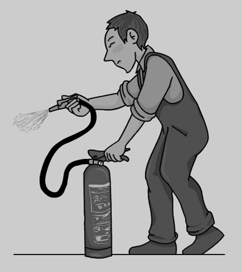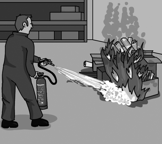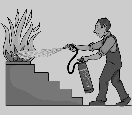 En la figura es pot veure un exemple de com atacar un foc tipus A amb extintor.
