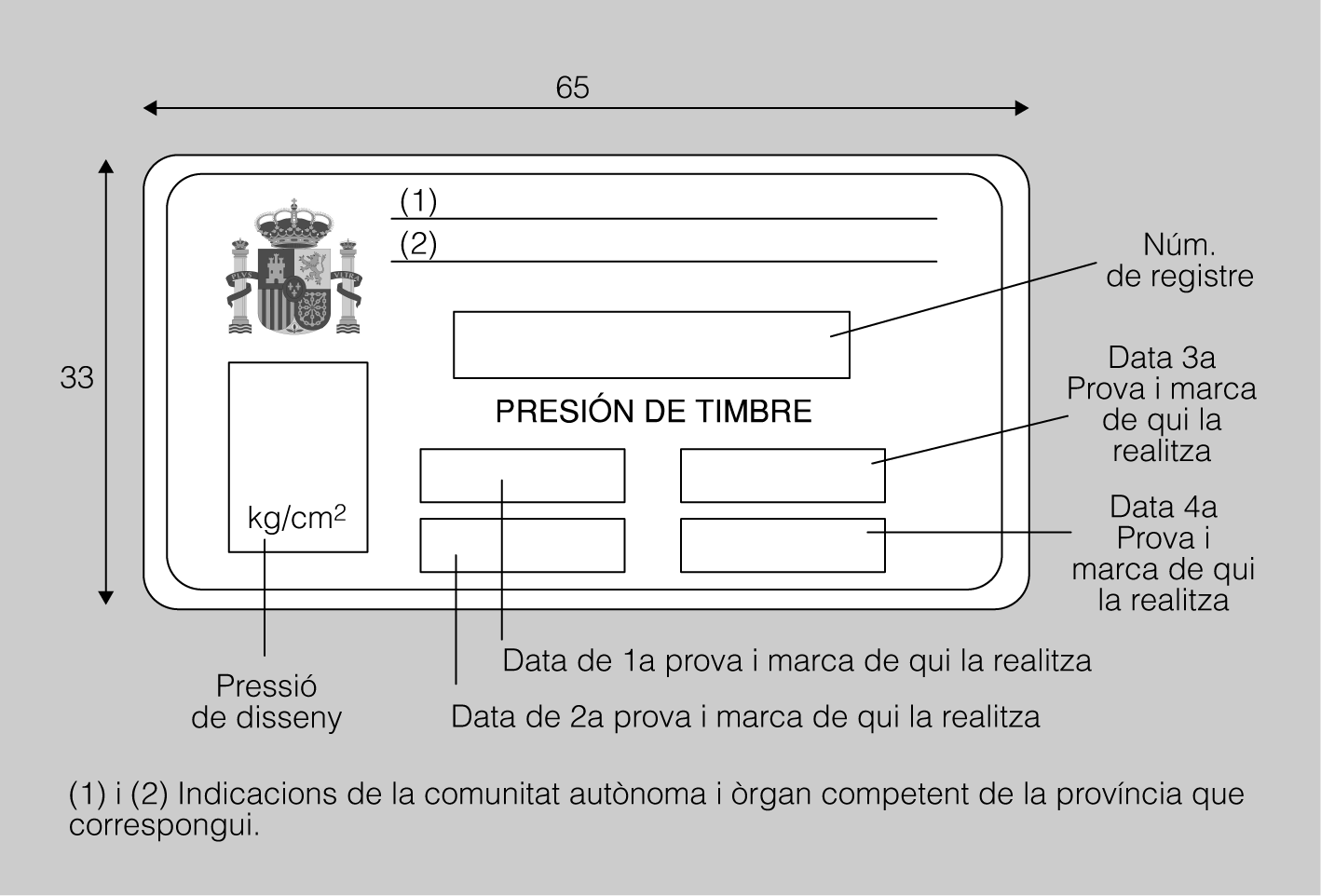 - Data de la primera prova de pressió i de les proves successives, i la marca de qui la realitzi.