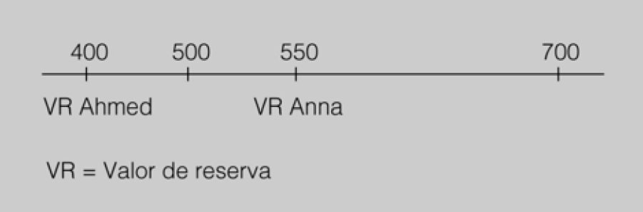 Tenim, per tant, que si l’Anna i l’Ahmed arriben a fer un pacte, el preu acordat estarà entre 400 € i 550 €. És a dir, la zona de possible acord entre les dues parts se situarà entre aquestes dues magnituds. En la figura representem aquestes magnituds.