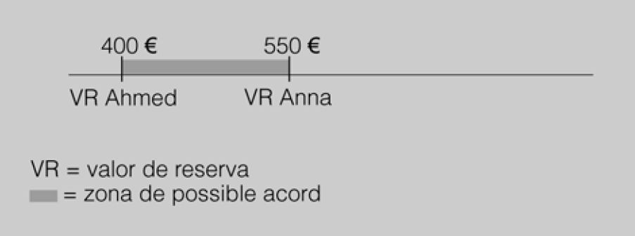 | Zona de possible acord | És l’espai que hi ha –si n’hi ha– entre els valors de reserva de cadascuna de les parts que participen en la negociació. |