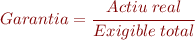 Se sol considerar que la raó òptima és la compresa entre 1,5 i 2, ja que d’aquesta manera l’empresa disposa de fons suficients per a tots els compromisos. - Garantia. Aquesta ràtio també s’anomena de solvència total, ja que mesura la garantia que tenen els creditors de cobrar els seus deutes. El quocient que mesura la solvència de l’empresa és el següent: