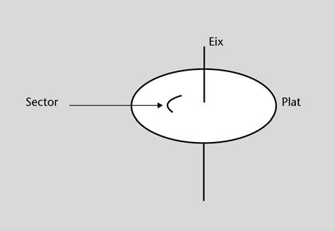 - Cada pista conté diversos sectors. Un sector conté 512 bytes.
