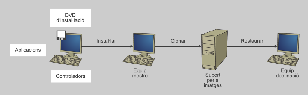 L’escenari òptim per a la creació i restauració d’imatges es dóna quan es disposa d’un nombre elevat d’equips amb un mateix maquinari i una configuració idèntica de programari.