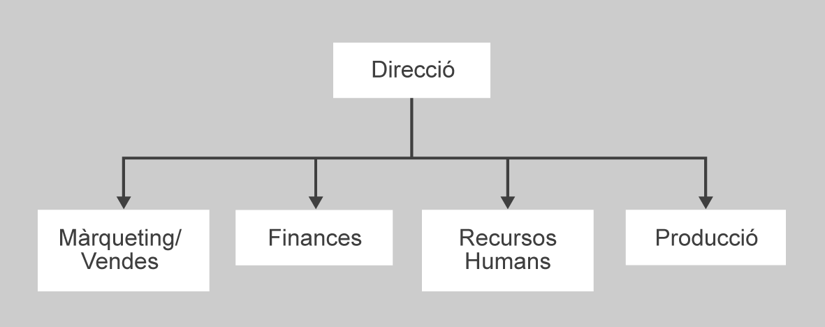 Les àrees d’activitat (figura) estan directament relacionades amb les funcions bàsiques que fa l’empresa a fi d’assolir els seus objectius. Aquestes àrees comprenen activitats, funcions i labors homogènies, i algunes de les més habituals són la producció, la mercadotècnia i les vendes, els recursos humans i les finances. Qualsevol empresa, petita, mitjana o gran, té empleats dedicats a les quatre funcions, ja sigui exclusivament o de manera compartida.